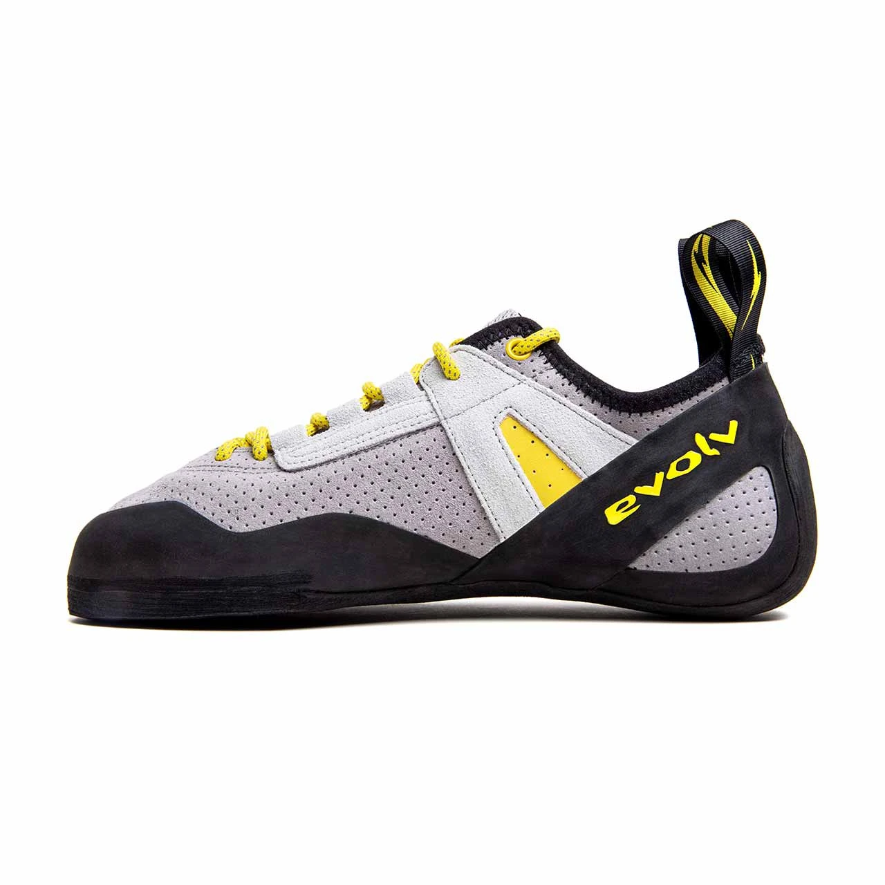 Built for the climber who prioritizes comfort but doesn’t want to sacrifice performance, the Evolv Men’s Defy Lace Climbing Shoe has everything you need to get on the wall and stay there. Putting comfort first, the Defy Lace features a perforated leather upper that molds to the shape of your foot over time, pairing nicely with the 3/4-length speed lace closure. The asymmetric profile naturally drives power to your big toe, giving you confidence on slick slabs and thin edges on off-vertical adventures. Complete with a TRAX SAS Outsole, Evolv’s most versatile climbing rubber, as well as a variable thickness rand for long-lasting durability, the Defy Lace is the ideal intermediate rock shoe for long days at the crag.