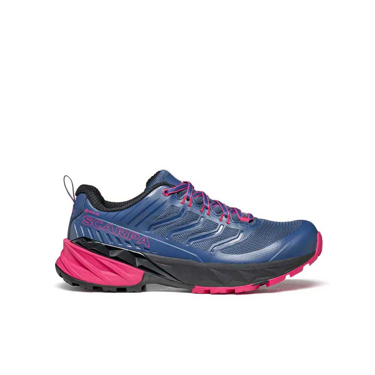 SCARPA designed the Women’s Rush GTX Shoe for high-mileage trail runs, day hikes, and light overnighters in all sorts of weather. Its GORE-TEX Extended Comfort lining is reliably waterproof and comfortably breathable for rainy and sunny conditions. The PRESA Free-Dome IKS outsole has a rockered profile to encourage a speedy stride, and the DST Stabilizer Torsion frame offers the stability you’d want out of a hiking shoe when the trail gets tricky. SCARPA’s Interactive Kinetic System utilizes soft, grippy Super Gum rubber where you need traction, leaving the rest of the shoe’s sole with five concave impact zones for extra shock absorption. The DTS TPU insole and 3D EVA-CM midsole also assist with cushioning for a comfy time on the trail now matter how fast you go.