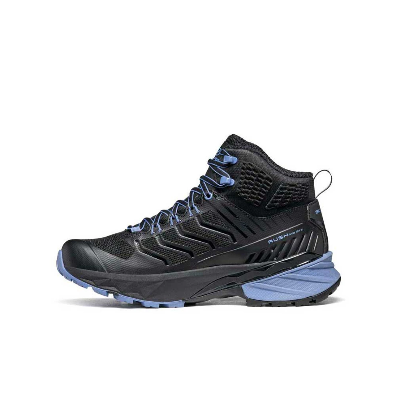 The SCARPA Women’s Rush Mid GTX has the stable support you’d expect out of a mid-height hiking boot, and it has the heart of a trail running shoe to help you move more efficiently. SCARPA rockered the sole’s profile to quicken heel-to-toe transitions that help you fast-hike effortlessly. GORE-TEX gives reliable waterproof protection in wet, muddy conditions, and Extended Comfort’s enhanced breathability keeps your foot comfy in warmer, dry weather. The bottom of the sole features grippy Super Gum rubber wherever there’s ground contact, while the remaining areas use concave, flexible impact absorbers to take the shock off your knees. A TPU footbed works with the cushy 3D EVA midsole to maintain cushioning and stable support for long trails.
